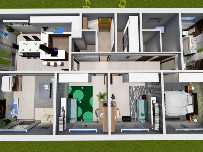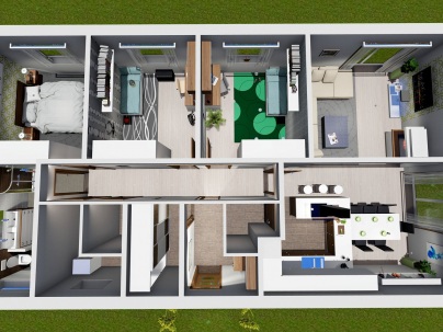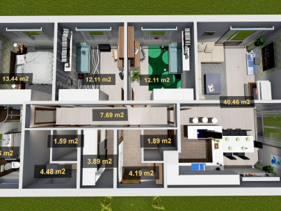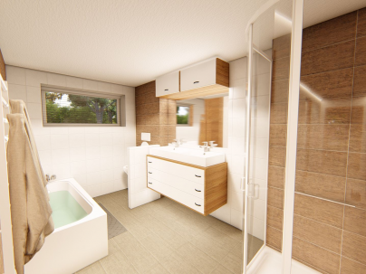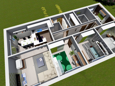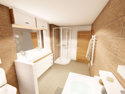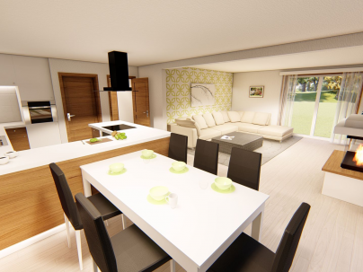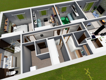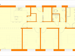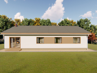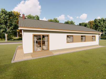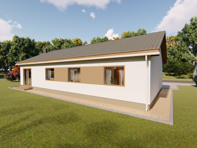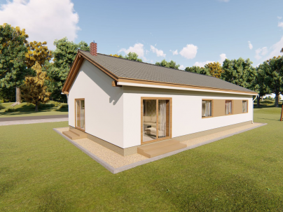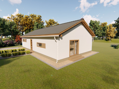 Součástí dipozice je koupelna a samostatný záchod, šatna u vstupu, spižírna, tři velké pokoje a rozlehlá kuchyň s obývákem. Pokud vás tento dům zaujal, rádi vám ho na vzorovém domě upravíme dle vašich představ.