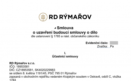 Zároveň se zavazujete k termínu uvedenému ve smlouvě dodat stavební povolení a podepsat smlouvu o dílo, toto si prosím pohlídejte.